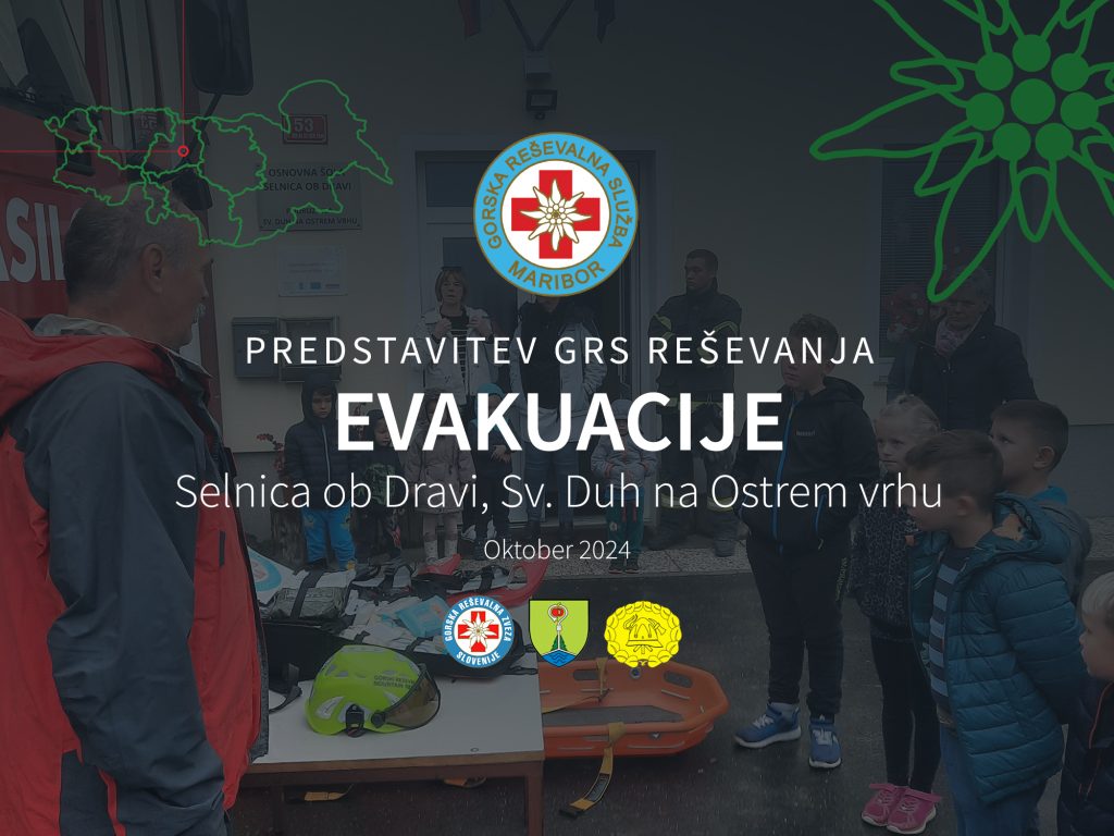 Naši reševalci so 22.10. v sodelovanju s PGD Selnica ob Dravi izvedli testne evakuacije kar treh visoko obiskanih objektov/inštitucij – osnovne šole, vrtca ter podružnice iz višje ležečega Sv. Duha na Ostrem vrhu. Ob tem so še z veseljem izvedli predstavitev gorske reševalne službe tamkajšnim učencem. Se vidimo naslednje leto!